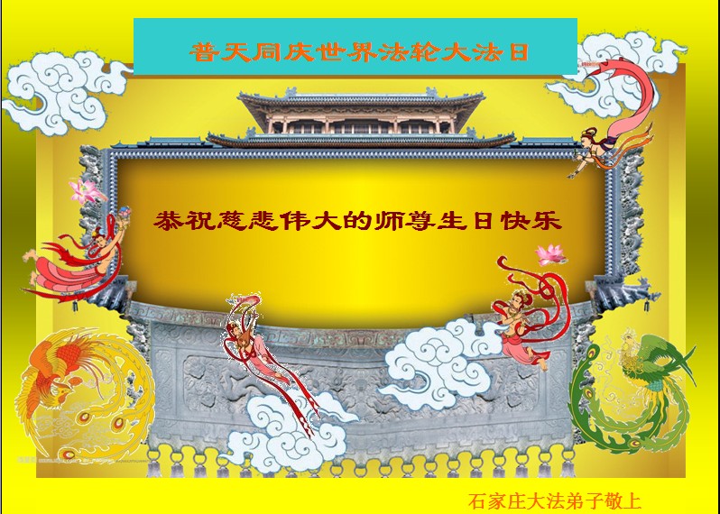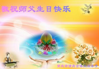 我們會努力做好弟子該做的三件事,走好走正證實大法的這條路,完成弟子的使命,兌現弟子的誓約。以表弟子們對師父的感恩,謝謝師尊。望早日與師尊團聚。再次祝師尊生日快樂!
