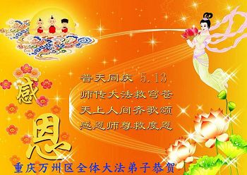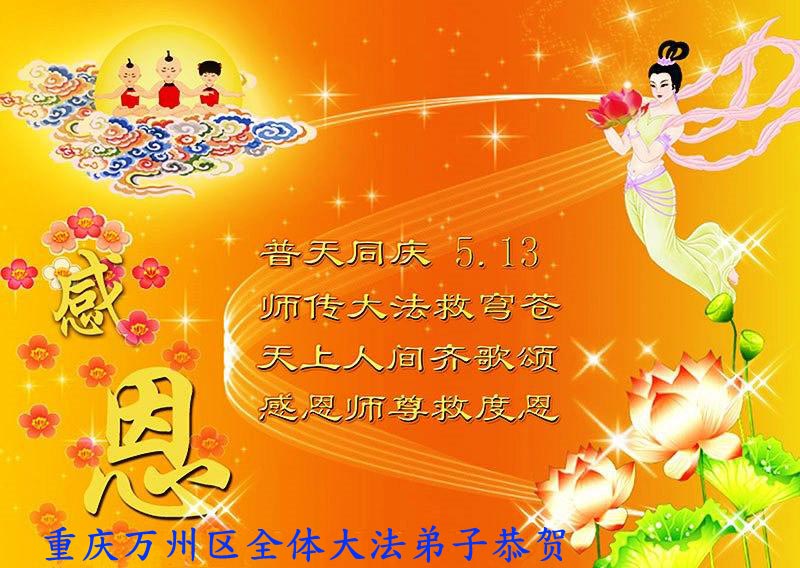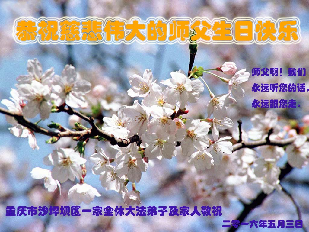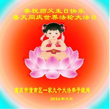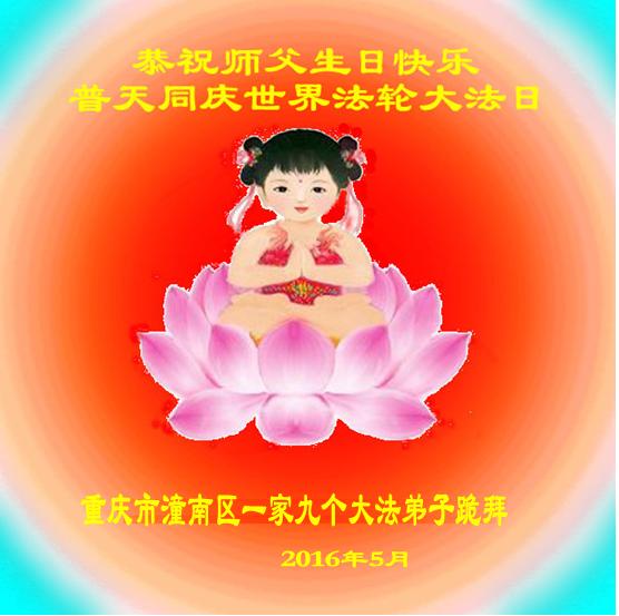 今年「5.13」是師父65歲華誕的大喜日子,我僅代表重慶主城區四代同堂的全家老小,向慈悲偉大的師父叩拜,祝賀師父生日快樂!