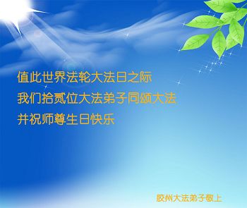 正值世界法輪大法日來臨之際,我們寧陽全體大法弟子,恭祝慈悲偉大的師尊生日快樂!