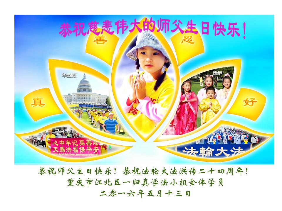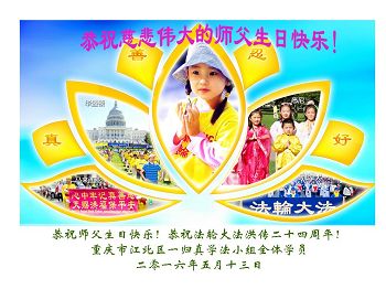 大陸湖北宜昌大法弟子恭祝偉大的師尊生日快樂!慶祝世界法輪大法日二十四週年!