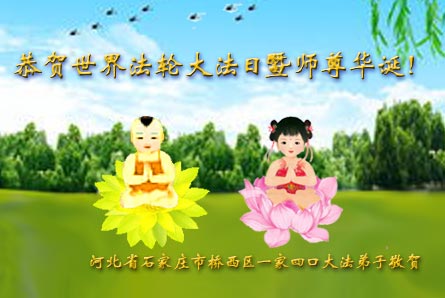 河北涿州市大法弟子一家人恭賀法輪大法日