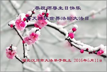 湖北省孝感市漢川市大法弟子恭祝師父華誕暨第十七屆世界法輪大法日!