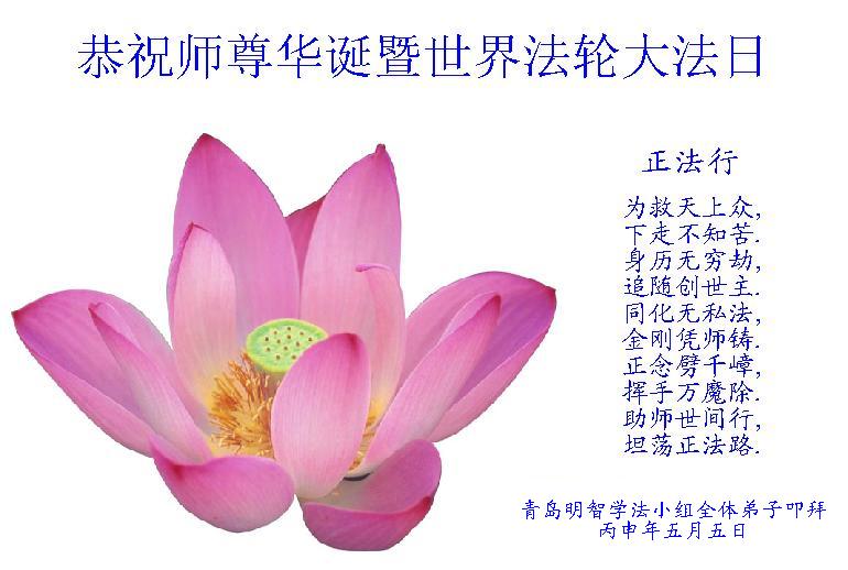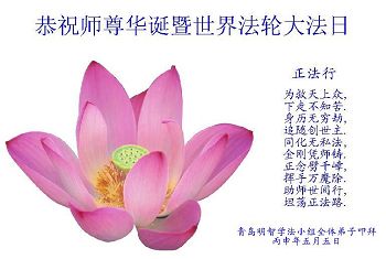 山東省青島大法弟子恭祝慈悲偉大的師尊生日快樂!