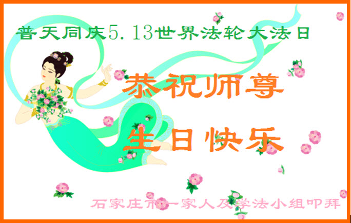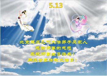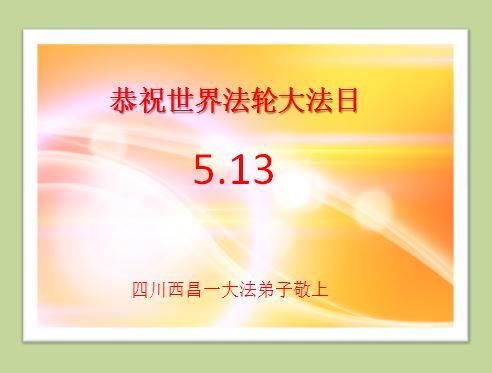 恭祝慈悲偉大的師尊生日快樂!祝賀法輪大法洪傳二十四週年!祝賀5.13世界法輪大法日!祝願慈悲偉大的師尊多些欣慰,少些操勞!感謝師尊把蒼穹救度!