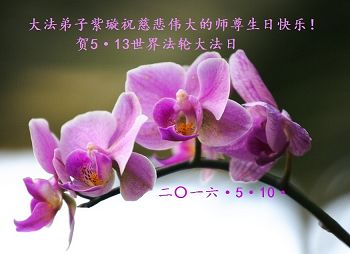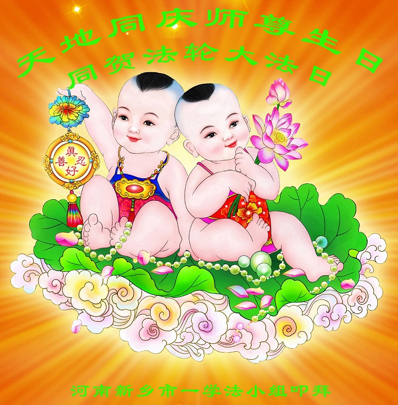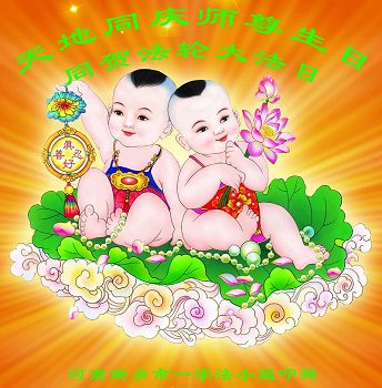 在這普天同慶、殊勝、感恩的日子裏,弟子們恭祝師尊生日快樂!恭賀世界法輪大法日!恭賀法輪大法洪傳二十四週年!感恩師父的慈悲救度!