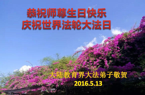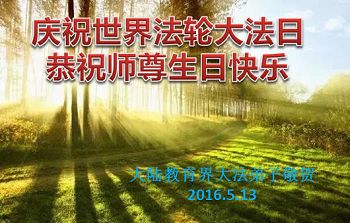 五月十三日是世界法輪大法日,師尊的生日。長春市大法弟子恭祝師父生日快樂!一名新修煉的學員冬日(筆名)特別轉達對師父的問候:「祝師父生日快樂!」大法弟子全家六口祝師父生日快樂!謝謝師父!(雙手合十)