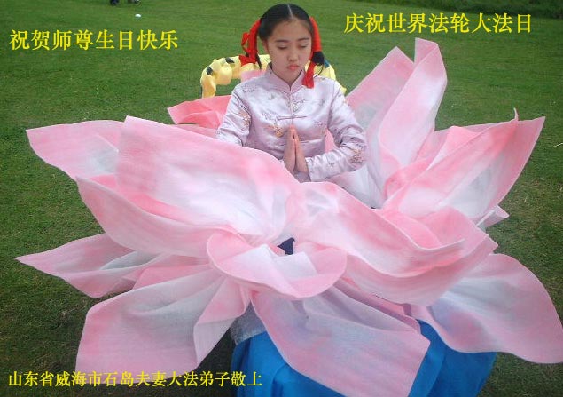 山東省榮成市一家夫妻大法弟子恭祝慈悲偉大的師尊生日快樂!