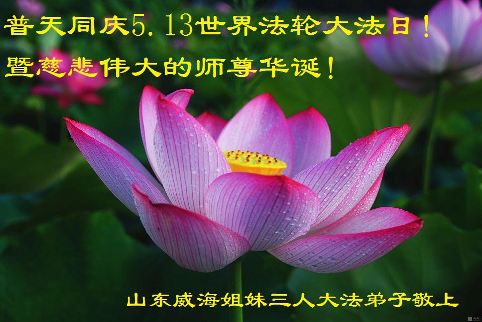 山東威海姐妹三人大法弟子恭祝師尊華誕!