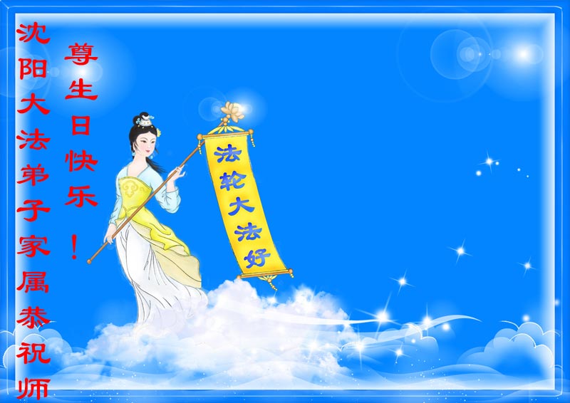 李老師您好,祝您生日快樂!我是一個大法受益者,我的父母、岳父、岳母都是大法弟子,妻子和妻姐都修煉過大法,由於邪黨惡人對我父母的迫害,她們倆姐妹就脫離了大法的修煉,但內心認為大法教人向善,是好的,一直堅信大法好,受益良多。