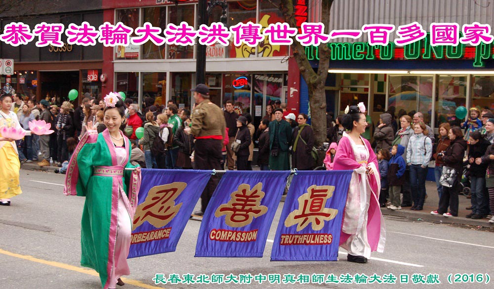 長春東北師大附中明真相師生在5•13世界法輪大法日來臨之際,恭賀法輪大法洪傳世界一百多國家!法輪大法好!