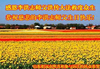 我們在師父您的呵護下,身體健康,工作順利,我真心祝願李老師生日快樂!真善忍宇宙大法是偉大的法,願法輪大法之光永照人間,救度眾生。