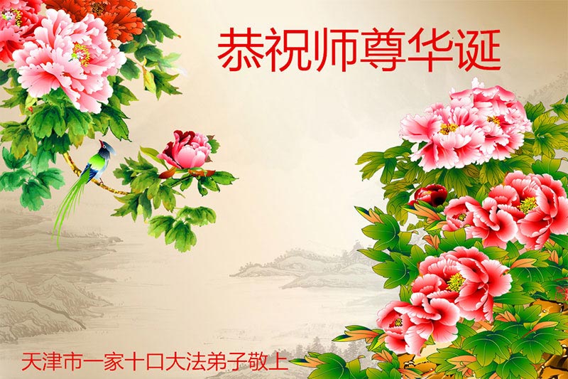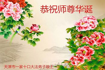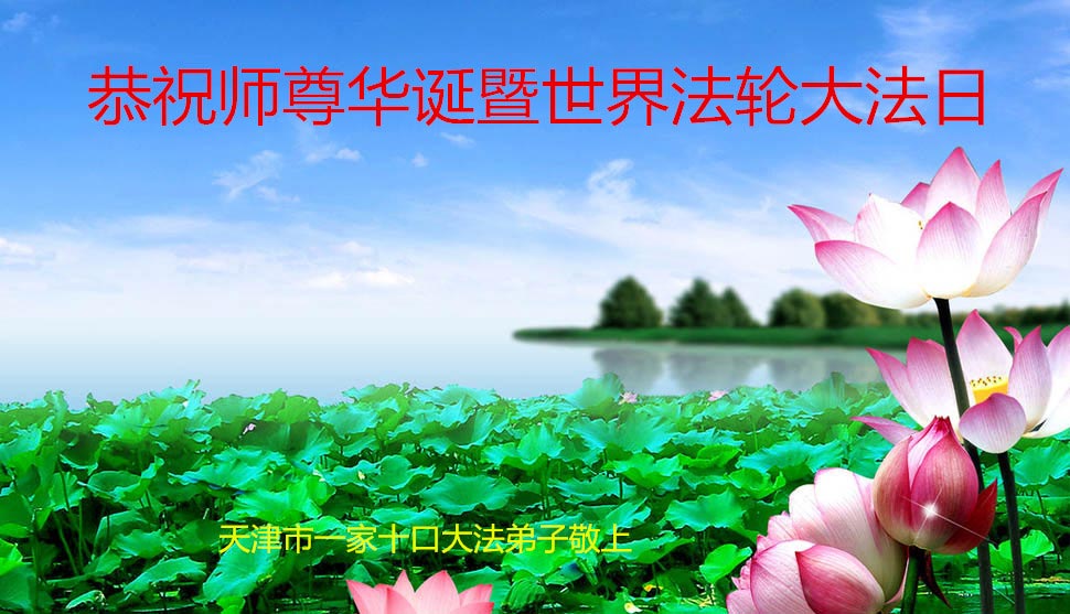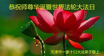 我非常慶幸自己在師父正法即將結束的時刻還能得此宇宙大法,成為大法弟子。與師父同在,與眾神佛同在。慶幸自己對師父對大法的堅信,才能在師父的呵護下、在同修們的全力幫助下,闖過一次次的生死關。人生很短,生命很長,漫長生命輪迴中苦苦等待的法船終於起航了。值此普天同慶、同祝、同賀的日子裏,弟子攜全家九口大法弟子,及幾十口暫未修煉的親屬們恭祝慈悲偉大的師尊華誕!慶祝世界法輪大法日!感謝師尊慈悲救度!