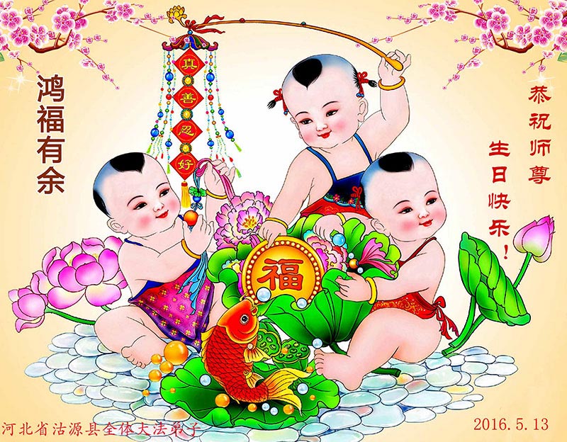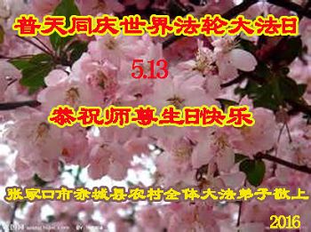 在2016年「5.13」來臨之際,河北省張家口市赤城縣雕鶚鎮大法弟子恭賀師尊華誕暨世界法輪大法日!感謝師尊慈悲救度!