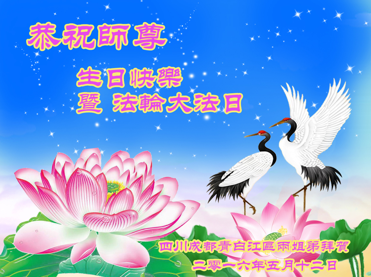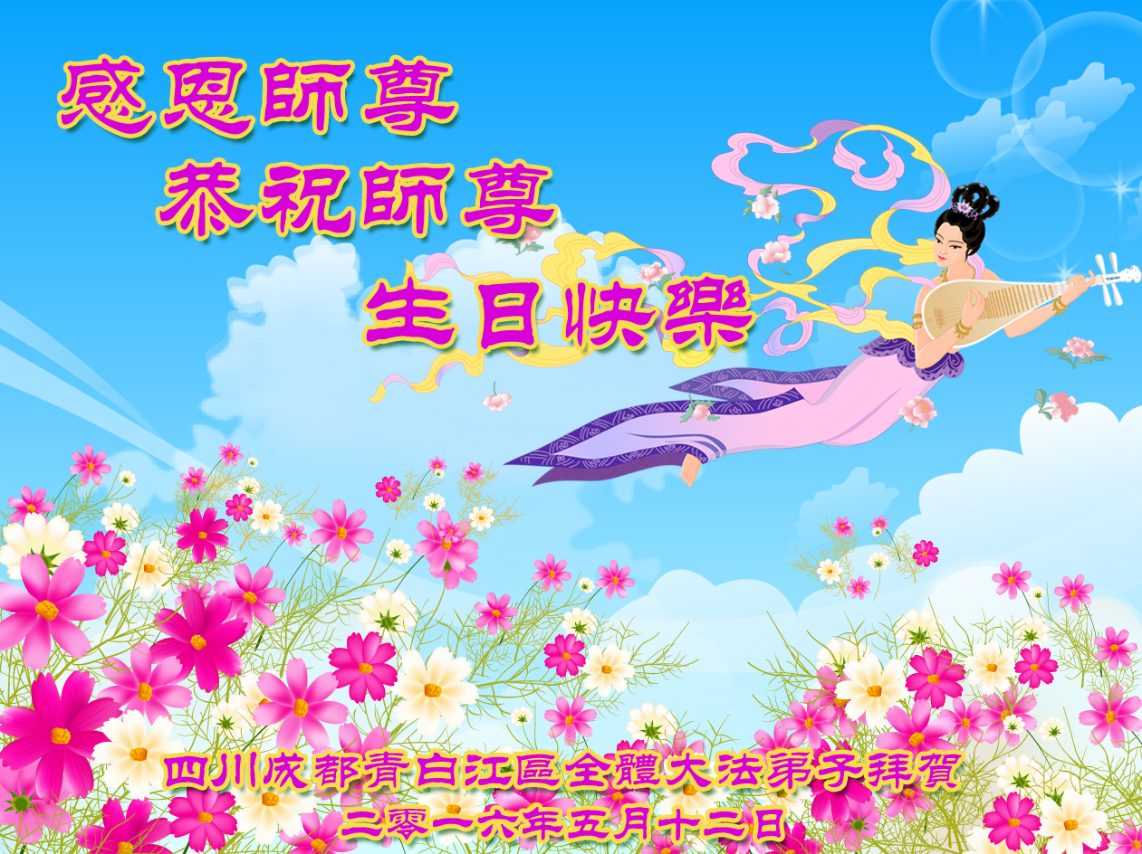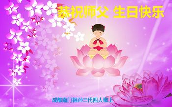 成都大法弟子恭賀師父生日快樂!師父好!法輪大法好!師父辛苦!在最後的日子裏,弟子一定加緊修煉跟隨師尊回家!