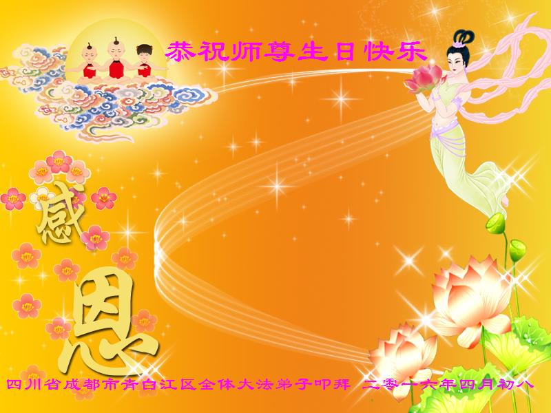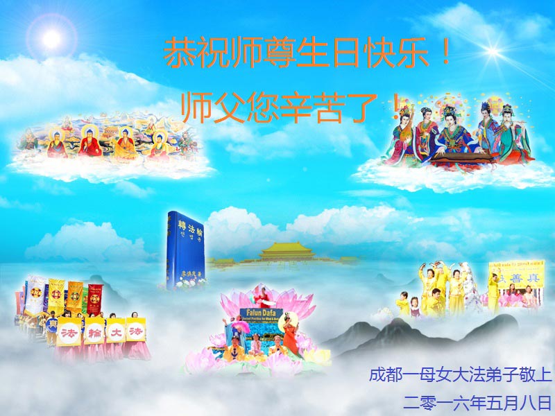 四川成都大法弟子恭祝師尊生日快樂!叩謝師父救度!