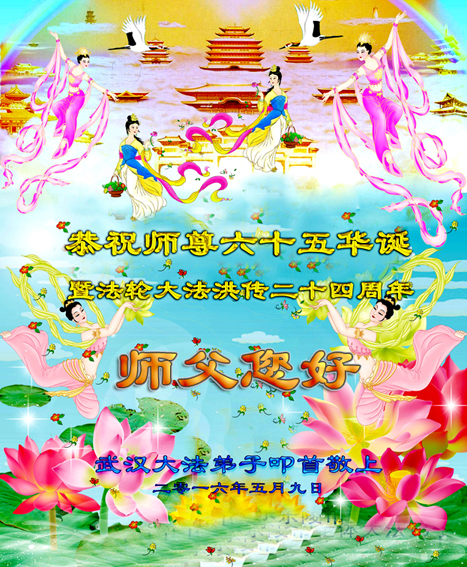 武漢大法弟子恭賀世界法輪大法日暨師尊華誕(24條)