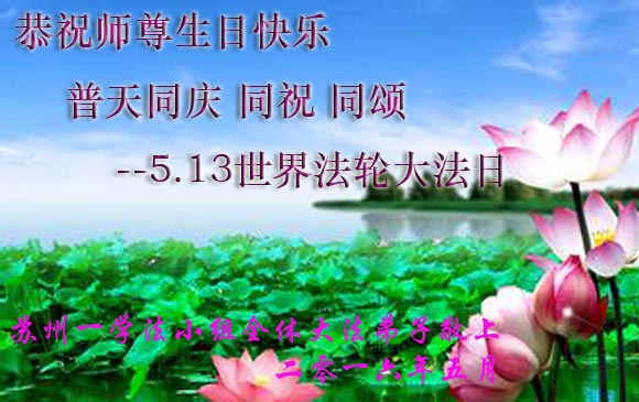 江蘇省蘇州市張家港市大法弟子恭祝慈悲偉大的師尊生日快樂!恭祝5.13世界法輪大法日!