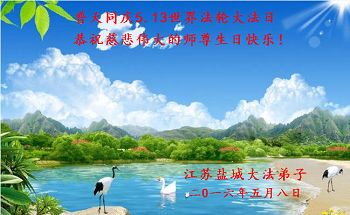 江蘇鹽城大法弟子恭祝世界法輪大法日暨師父生日快樂!