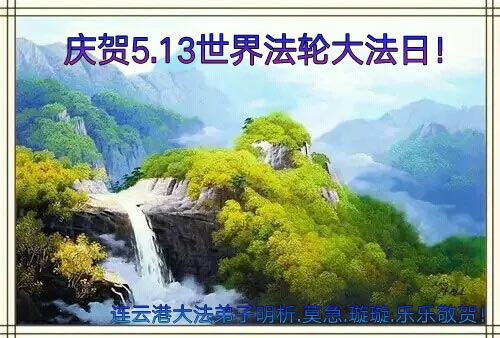 弟子全家恭賀5.13世界法輪大法日!感謝師父慈悲救度,弟子知道唯有聽師父的話,做好三件事,努力走好最後的路,才能跟師父回家。祝師父生日快樂!