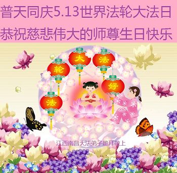 江西省南昌市一大法弟子恭祝慈悲偉大的師尊生日快樂!恭賀世界法輪大法日!