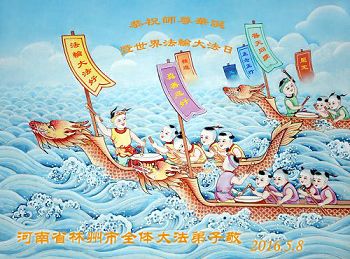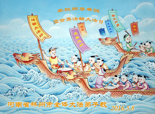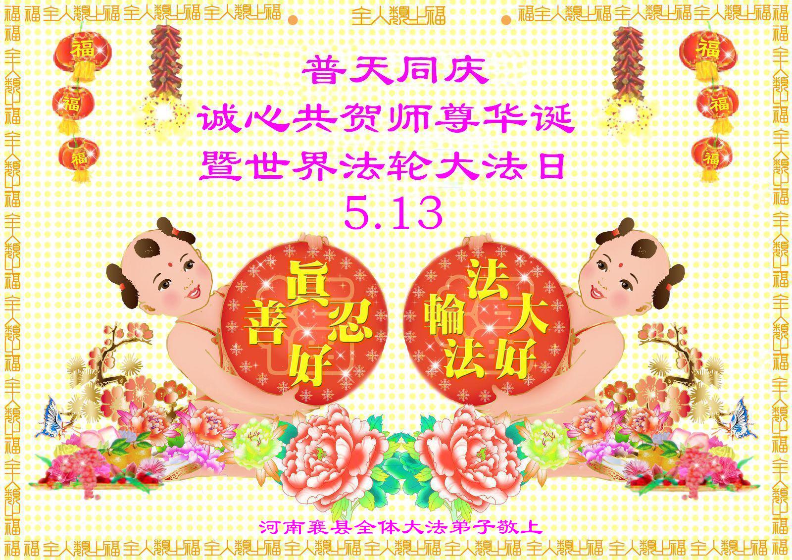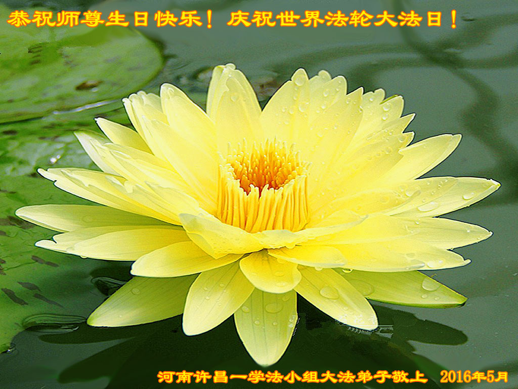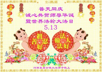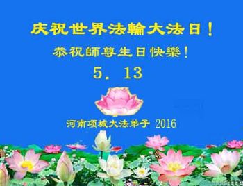 2016年5月13日世界法輪大法日即將到來之際,河南省伊川縣全體大法弟子敬祝慈悲偉大的師尊生日快樂!