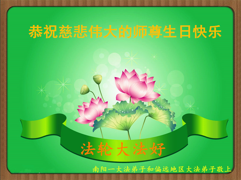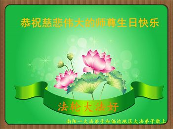 我是河南省淮陽縣的大法弟子,在世界法輪大法日,也是慈悲偉大的師尊六十五華誕即將來臨之際,向慈悲偉大的師尊恭祝生日快樂!
