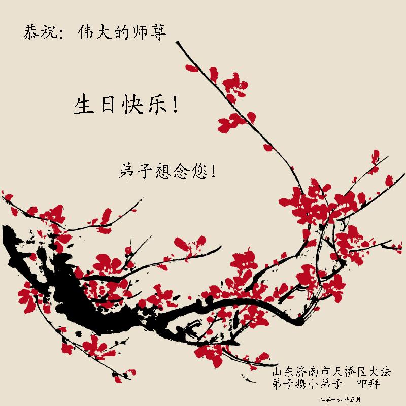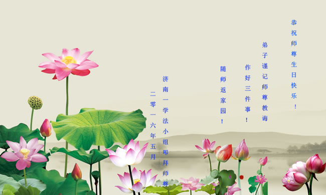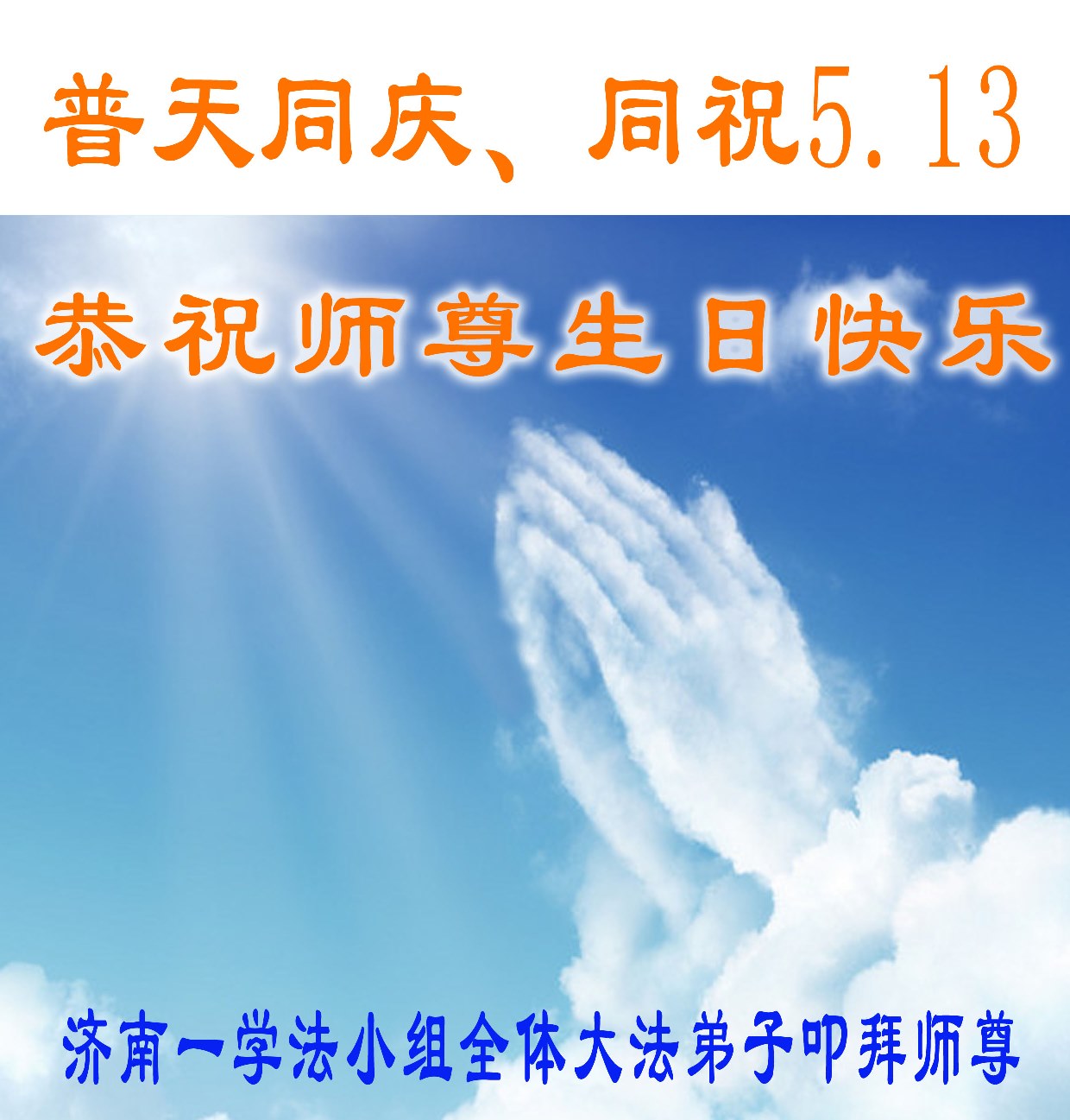 普天同慶世界法輪大法日!濟南大法弟子全家恭祝慈悲偉大的師父生日快樂!