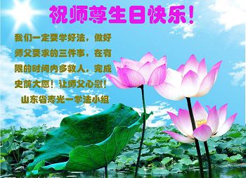 在全球慶祝世界法輪大法日時,我感謝師父慈悲救度,師父辛苦了,弟子祝師父生日快樂!