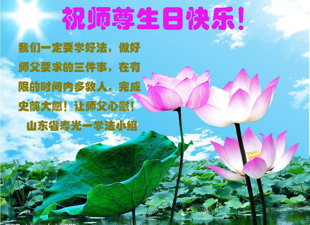 感恩師父對我們的慈悲救度,把我們從地獄裏撈起,為我們洗去了塵世的骯髒,給我們健康的身體,讓我們走上了返本歸真的路,師父的恩德我們無以報答,只有精進實修,做好三件事,多救人,完成史前大願。在5.13這喜慶的日子裏,我們恭祝師父生日快樂!跪拜師尊!
