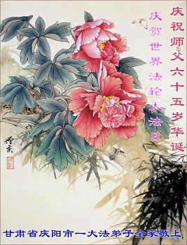 甘肅省慶陽市大法弟子恭祝師父六十五華誕暨世界法輪大法日!