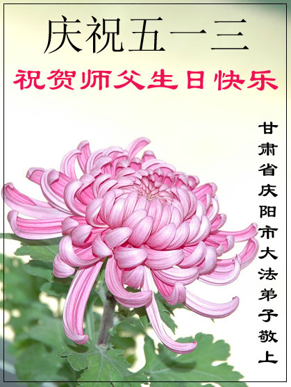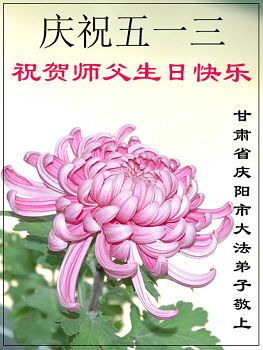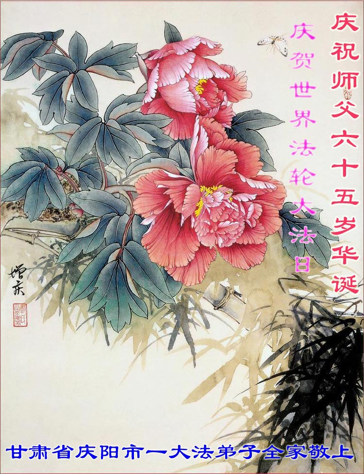 甘肅省慶陽市一大法弟子恭祝師父六十五華誕暨世界法輪大法日!