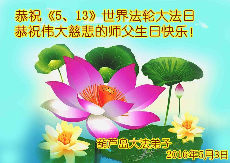 遼寧省葫蘆島新區兩大法弟子恭祝偉大的師尊生日快樂!恭賀世界法輪大法日!