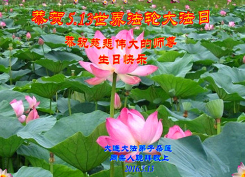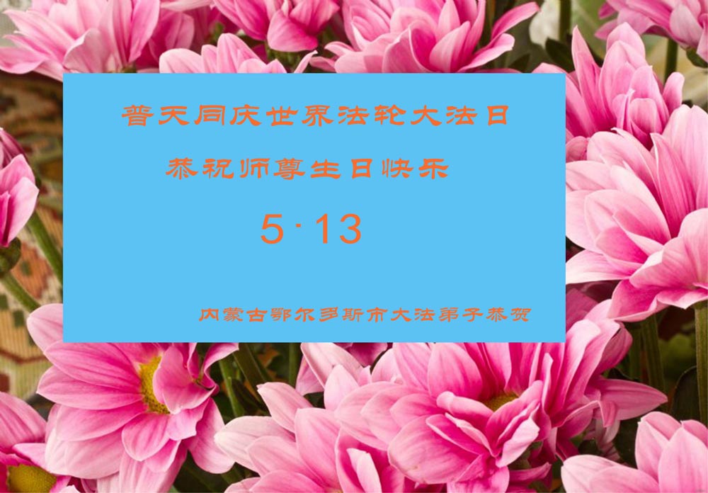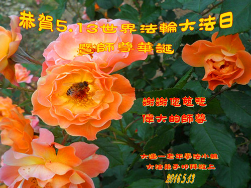 師父好:弟子祝您生日快樂!在您生日來臨及恭迎5.13全世界大法日時,深感師父無私給予弟子如今美好的一切一切,無以表達,也無以報答師父,唯有精進實修,聽從師父的教導,按師父的要求去做好三件事,師父你放心吧,弟子從今嚴格要求自己,彌補以前的懈怠,直至圓滿隨師還。