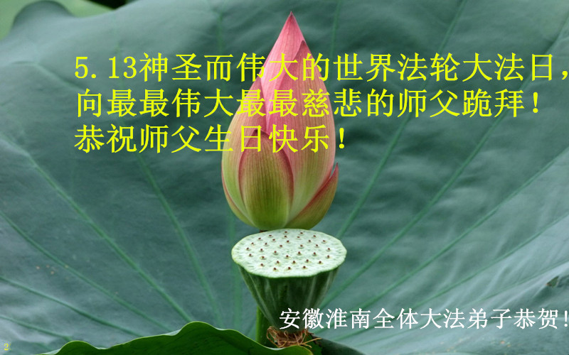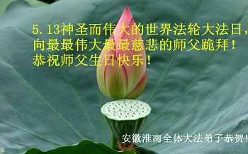 安徽淮南全體大法弟子恭賀法輪大法日暨李洪志師尊六十五歲華誕!