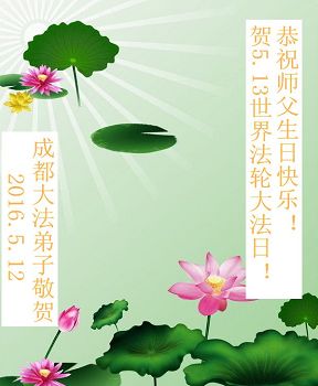四川成都大法弟子及家人恭祝慈悲偉大的師尊生日快樂!