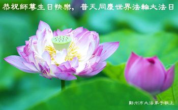 河南省鄭州一大法弟子代表幾位被關押鄭州市的大法弟子恭賀師尊生日!恭賀法輪大法日!
