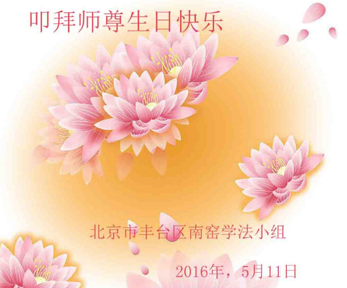 北京市豐台區南窯學法小組大法弟子恭賀法輪大法日暨叩拜師父生日快樂!