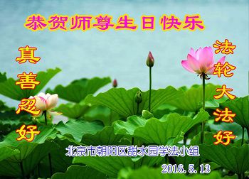北京朝陽區甜水園學法小組恭祝法輪大法日暨祝師父生日快樂!