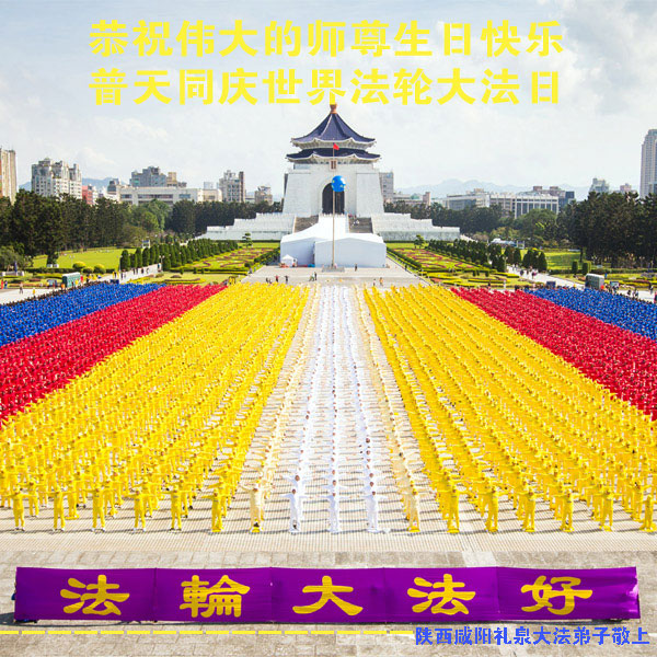陝西咸陽禮泉大法弟子全家恭祝偉大的師尊生日快樂暨世界法輪大法日!