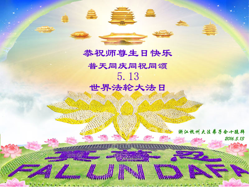 浙江杭州大法弟子恭祝法輪大法日!恭祝師尊生日快樂!