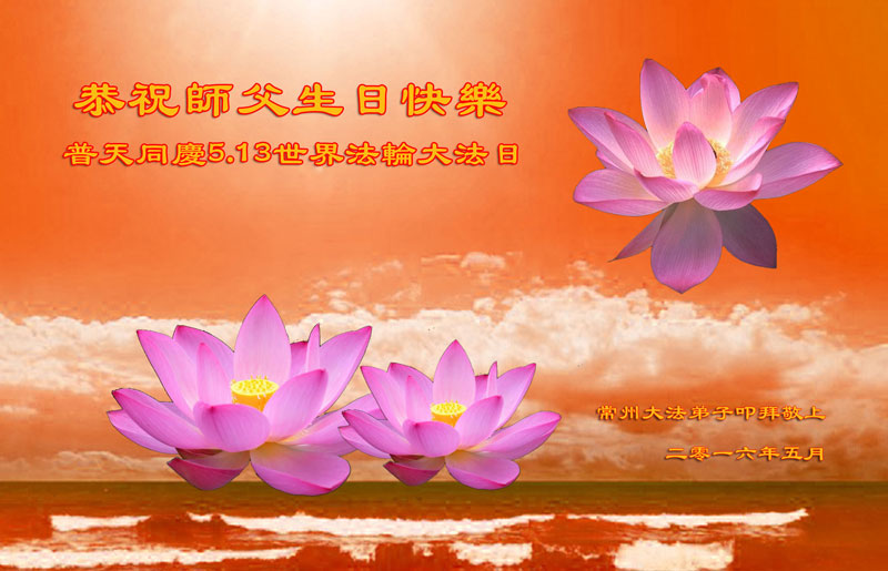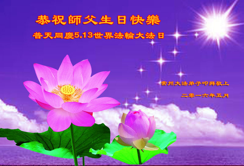 江蘇常州大法弟子恭祝師父生日快樂!普天同慶世界法輪大法日!