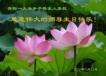 貴州省貴陽一大法弟子攜家人恭祝慈悲偉大的師尊生日快樂!慶祝世界法輪大法日!