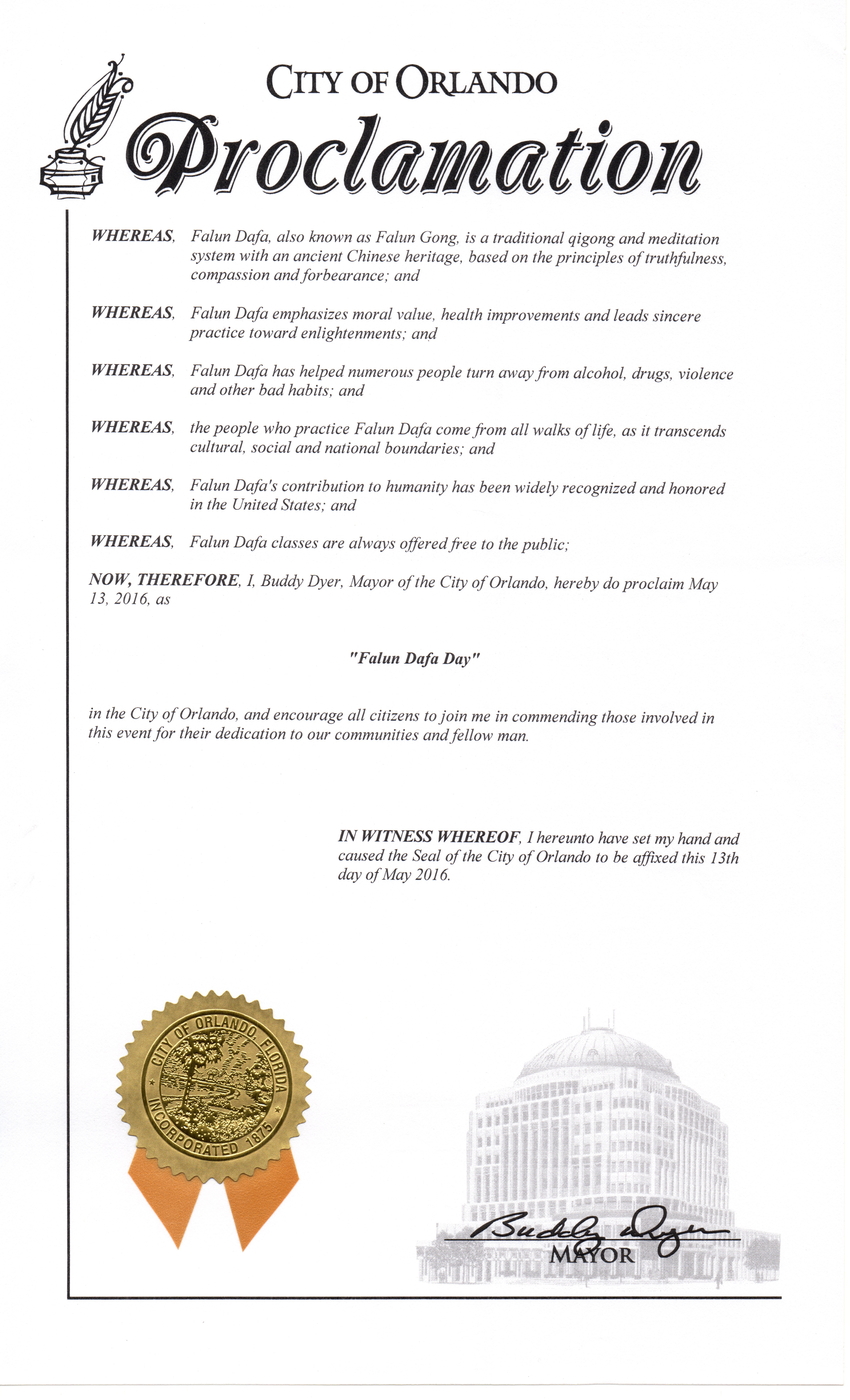 因此,現在,我,奧蘭多市市長巴迪•代爾(Buddy Dyer)宣布二零一六年五月十三日為奧蘭多市
