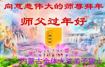 在這傳統佳節來臨之際,也是正法接近尾聲之時,越是這樣,越是能感悟到師父的慈悲與偉大,此刻用盡人間的語言難以言表,只有弟子精進實修、做好「三件事」才是對師父最好的感恩!在此全體內蒙古大法弟子共同向慈悲偉大師父拜年!師父過年好!弟子們堅信正法必成!