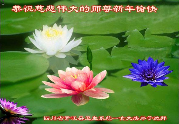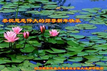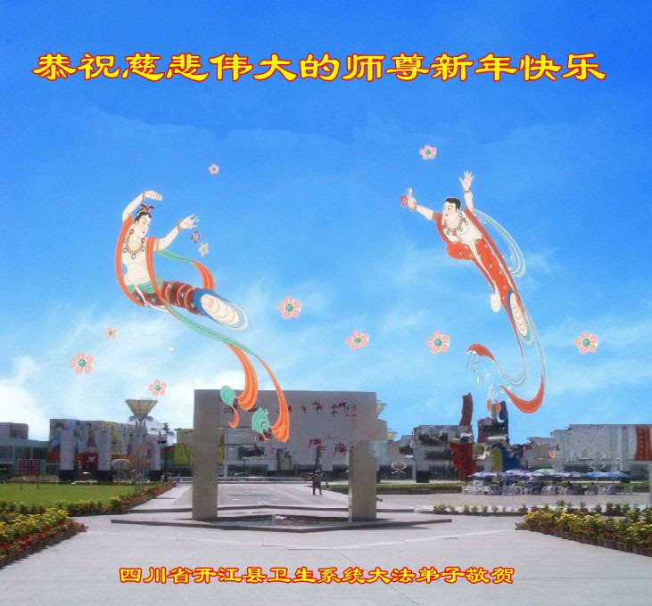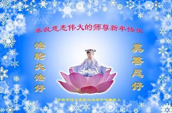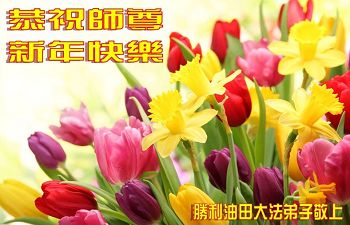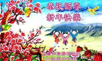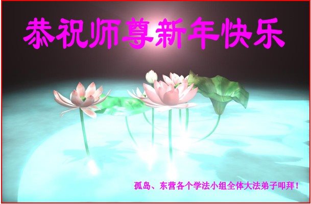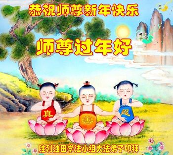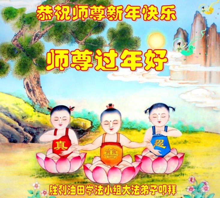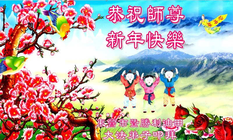B3)勝利油田大法弟子向師尊拜年,跪拜師父,祝師父新年快樂!身體健康,萬事如意。在新的一年裏,多學法、多救人,做好三件事。不辜負師尊慈悲苦度。
