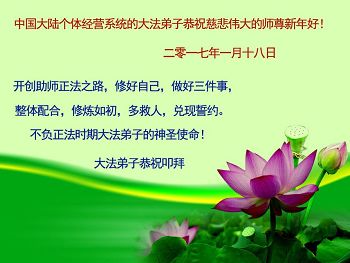 二零一七年中國新年到了,弟子敬祝師尊新年好!。在這新的一年裏,我要加倍努力做好三件事,兌現誓約,修好自己,多救眾生,讓師尊少點操勞。