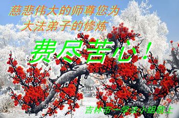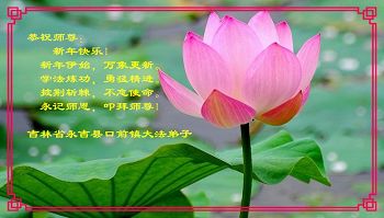 吉林省吉林市大法弟子恭祝慈悲偉大的師父新年好!不爭氣的弟子,在新的一年裏,一定精進實修,抓緊時間救人,少讓師父操心。
