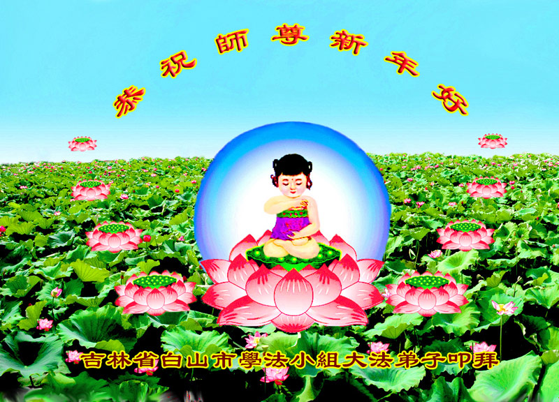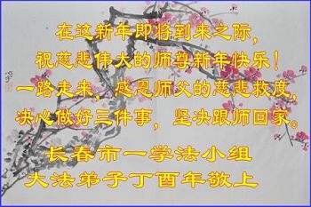 吉林省長春一學法小組大法弟子祝慈悲偉大的師尊新年快樂!