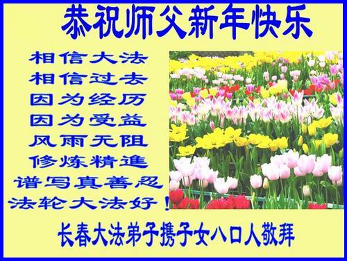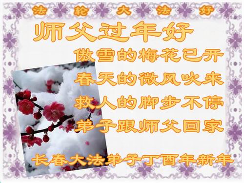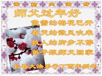 吉林省長春大法弟子在丁酉年新年合十給師父拜年:師父過年好!