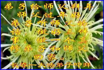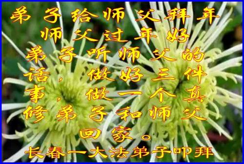弟子給師父拜年:師父過年好!弟子聽師父的話,做好三件事,做一個真修弟子和師父回家。